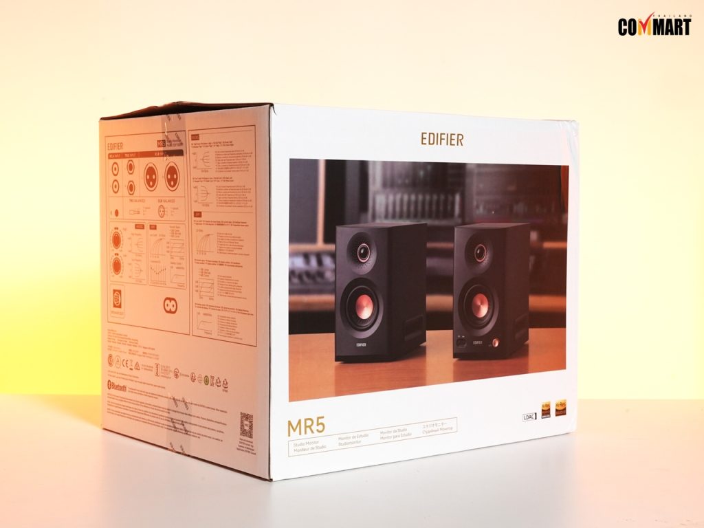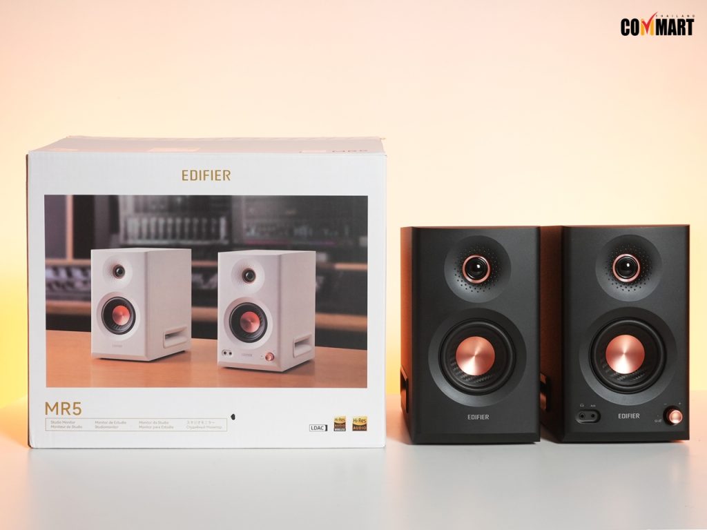 วันนี้เราได้มีโอกาสรีวิว Edifier MR5 ลำโพงมอนิเตอร์ระดับสตูดิโอภาคต่อ (จาก MR4) ที่มาพร้อม ‘ไตรแอมป์’ อาทิ ไดรเวอร์เบสขนาด 5 นิ้ว (Woofers) ไดรเวอร์เสียงกลางขนาด 3.75 นิ้ว (Mid Drivers) และทวีตเตอร์โดมไหมขนาด 1 นิ้ว (Silk Dome Tweeters) ทั้งหมดในร่างเดียว อีกทั้งยังรองอินพุต (Input) หลากหลาย อาทิ XLR/TRS กับ  RCA/AUX และรองรับการใช้งานแบบไร้สายด้วย โดยมีชิป LDAC กับ Bluetooth V6.0 ช่วยให้เสียงแบบไร้สายได้ทรงพลัง ในราคาเพียง 6 พันบาทต้น ๆ เท่านั้น