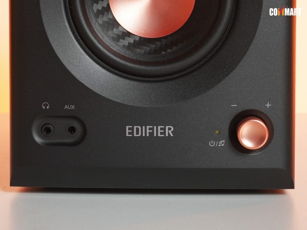 ด้านหน้าก็มาพร้อมพอร์ตเชื่อมต่อหูฟัง 3.5 mm กับ AUX และมีตัว Knob ปรับระดับเสียงพร้อมเป็นสวิตส์เปิดปิดในตัวด้วย ที่ยกมาจาก MR4 รุ่นก่อนหน้ามาเลย