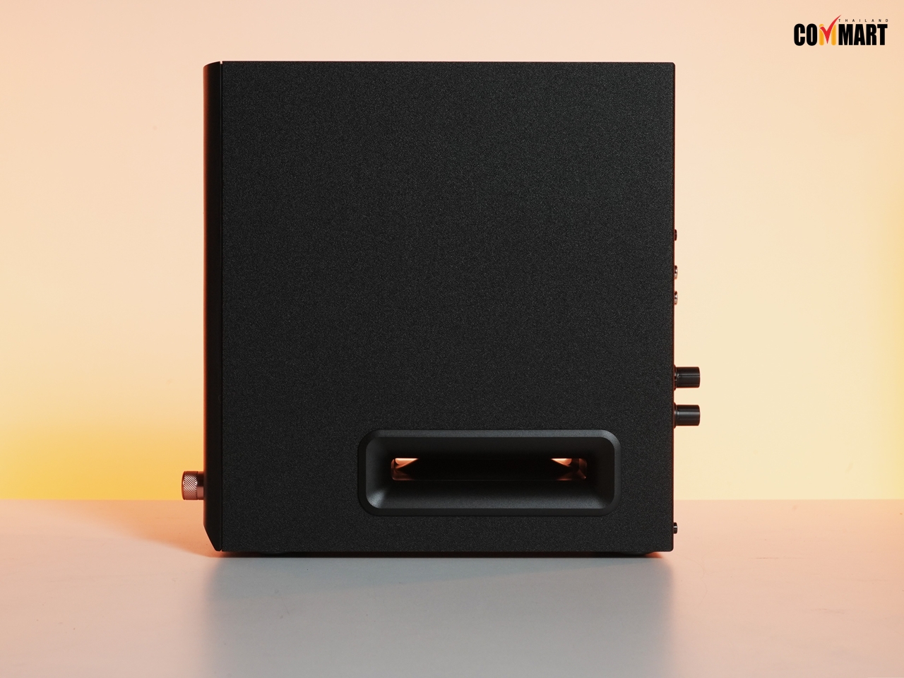 • ปุ่มควบคุมแบบหลายฟังก์ชันบนแผงด้านหน้าสำหรับเปิด/ปิดเครื่อง ปรับระดับเสียง และสวิตช์เอฟเฟกต์เสียง