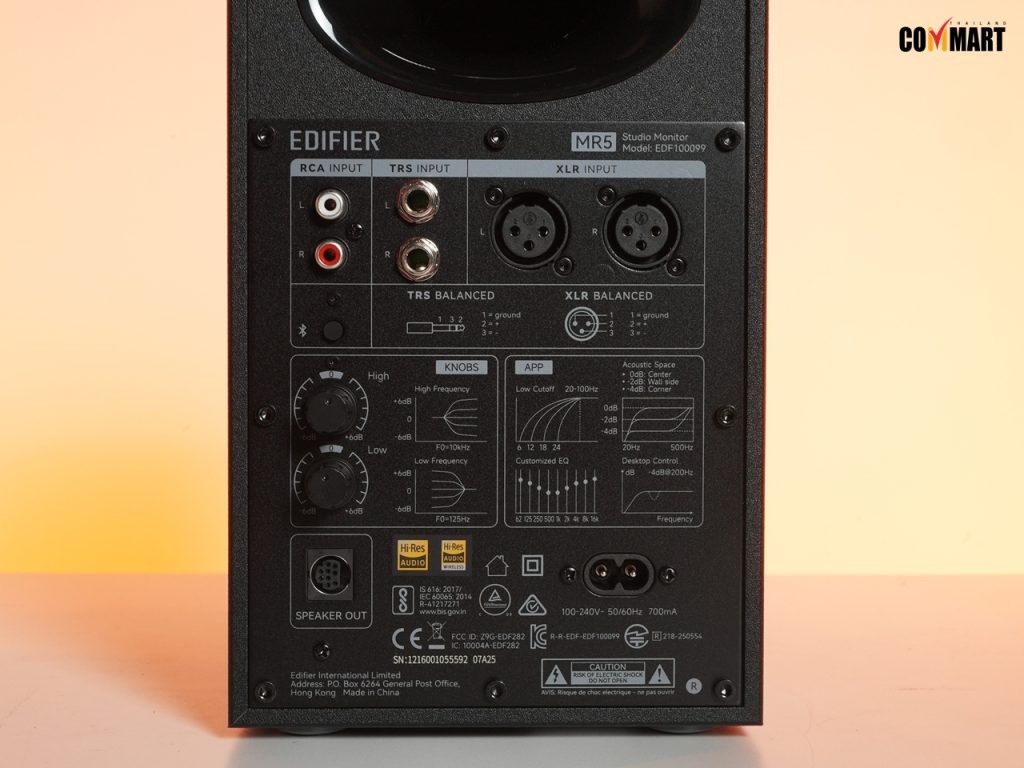จุดเด่นถัดมาของ Edifier MR5 คือมาพร้อมการเชื่อมต่อ Input ที่หลากหลายมาก โดยมีทั้ง XLR และ TRS ให้ความสมดุลสำหรับการส่งสัญญาณด้วยระดับเสียงรบกวนต่ำและการเชื่อมต่อที่ง่ายดายกับอุปกรณ์ผลิตเสียงและเครื่องดนตรี กับยังมี RCA และ AUX สำหรับการเชื่อมต่อพร้อมกันกับอุปกรณ์เสียงอื่น ๆ โดยง่าย