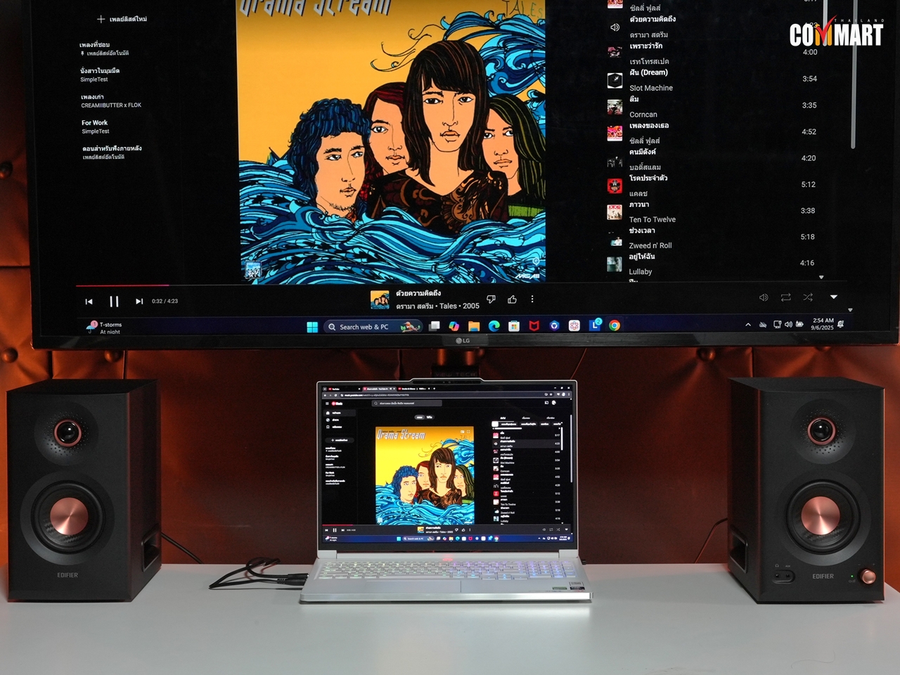 หลังอ่านสเปกและฟีเจอร์จนเคลิ้ม ต่อไปก็ลองพิสูจน์ประสิทธิภาพของ Edifier MR5 แบบบ้าน ๆ ด้วยโน้ตบุ๊กเกมมิ่งตัว Top  x 1 กับ TV 4K ขนาด 55 นิ้ว x 1 ในห้องสตูดิโอประจำบริษัท… โดยส่วนตัวแล้วก็มีความชื่นชอบเครื่องเสียงมานาน แต่ไม่ถึงขั้นหูเทพหูทองคำ ฉะนั้นในรีวิวนี้อาจไม่ตรงใจทุกคน ได้ยินเสียงไม่เหมือนกัน แต่สำหรับผมที่ลองทดสอบแล้ว ก็ได้ยินเสียงตามนี้เลย