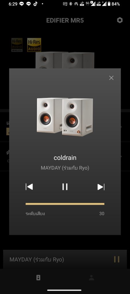 อนึ่ง หากต้องการขับเสียงตัว Edifier MR5 ผ่าน Streaming ให้ได้คุ้ม ๆ ขอแนะนำแอปฯ Tidal หรือ Apple Music ดีกว่า เพื่อให้ได้พลังเสียงระดับ FLAC  24-bit, 192 kHz มาเปิดผ่านตัวลำโพง MR5 นี้ไปเลย