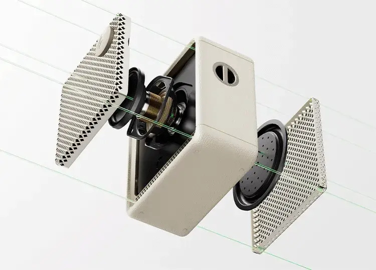 - เรดิเอเตอร์เบสแบบพาสซีฟขนาด 2 นิ้ว (55 มม.) เพื่อเสียงเบสที่หนักแน่น