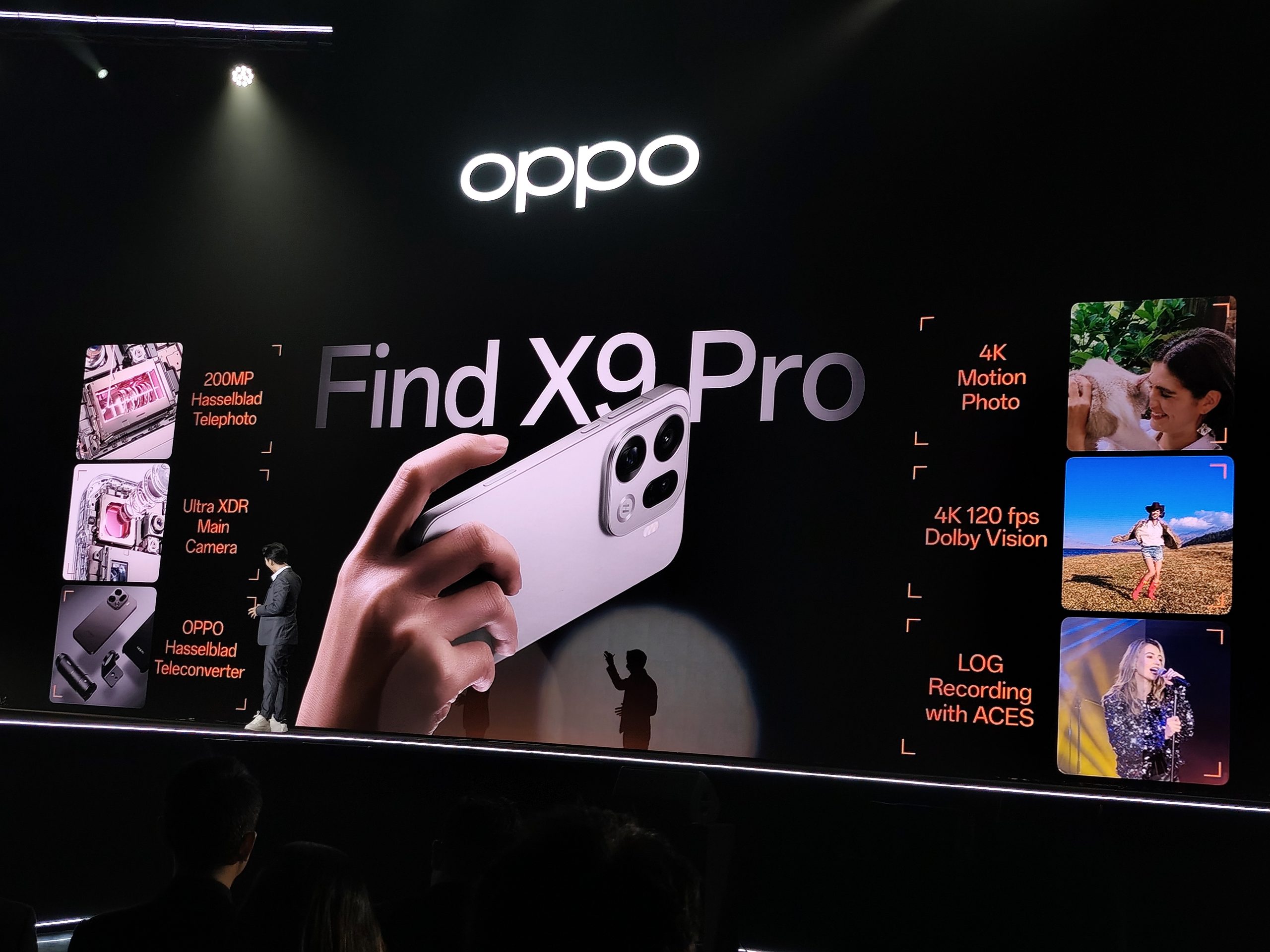 จุดเด่นของตัว OPPO Find X9 Series ก็มีกล้องที่ได้เทคโนโลยีจากทาง Hasselblad มาช่วยให้กล้อง Telephoto หรือซูมไกลได้ถึง 120 เท่า ผ่านความละเอียดสูงสุด 200MP ทั้งยังรองรับการถ่ายวิดีโอ 4K 120 fps ด้วย กับมีโหมดพิเศษอย่าง Stage Mode ช่วยให้เก็บภาพแสงสีในงานคอนเสิร์ตได้อย่างคมชัด และ Hasselblad Portrait ยกระดับภาพพอร์ตเทรตให้มีสีผิวที่ดูเป็นธรรมชาติ มีมิติ แสง และโทนสีสมจริงในทุกช็อต