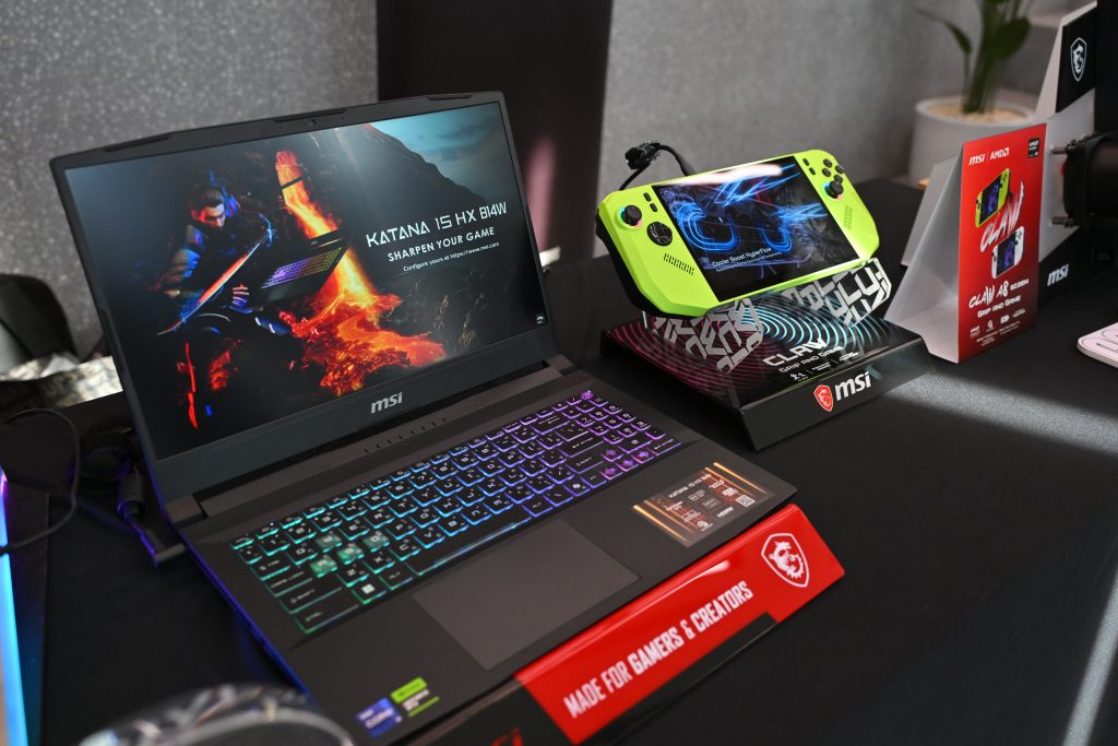 บูธ MSI รอบนี้ ประเดิมด้วยชุดระบายความร้อนซีพียูใหม่ (Liquid Cooling) อย่าง MSI Coreliquid P13 และโน้ตบุ๊กเกมมิ่งรุ่นใหม่ประจำปี 2025 อาทิ MSI Vector A18 HXI (2025) กับ Katana 15 HX (2025) ที่อัปเกรดสเปกให้แรงกว่าเดิม ด้วยซีพียู Intel Core i9-14900HX และการ์ดจอ RTX 50 Series แต่ยังคงความบางเหมือนเคย