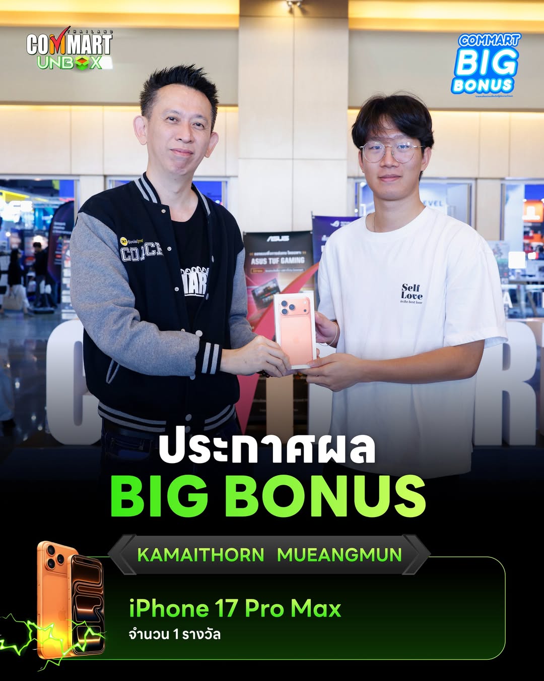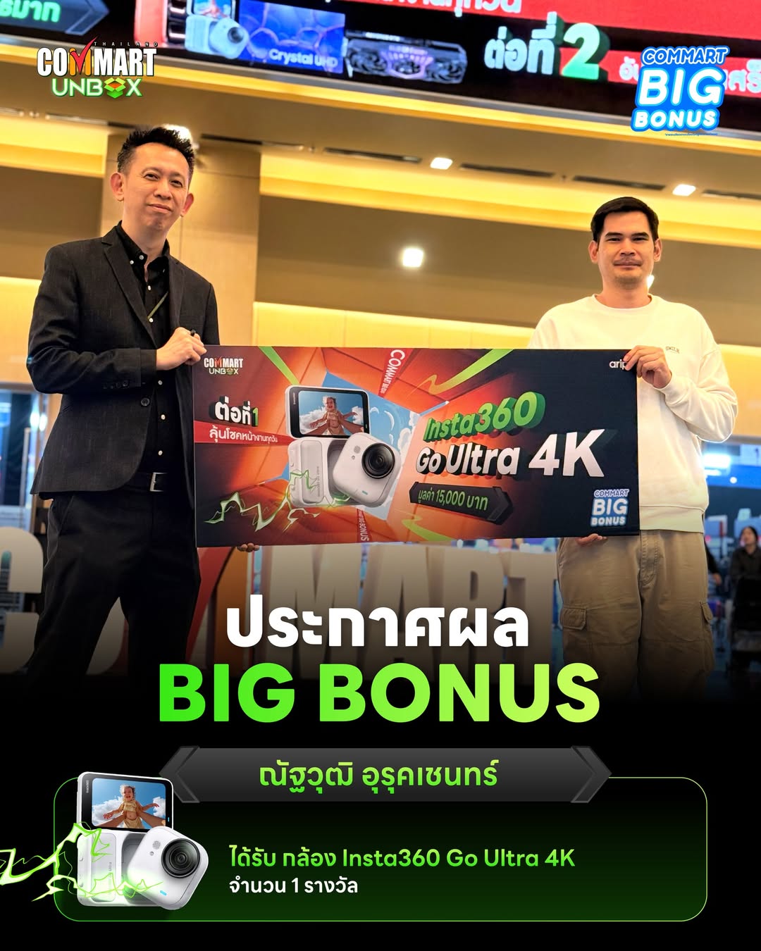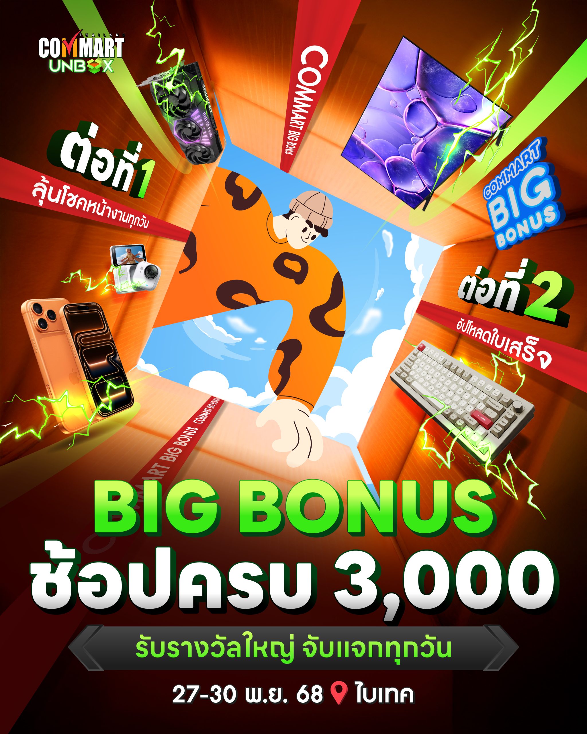 คอมมาร์ต Big Bonus แค่มาช้อปในงานคอมมาร์ต ก็มีสิทธิ์ลุ้นรางวัลสุดพิเศษถึง 2 ต่อ คอมมาร์ตจัดให้ จับแจกตลอด 4 วัน หลังงานยังลุ้นได้อีก