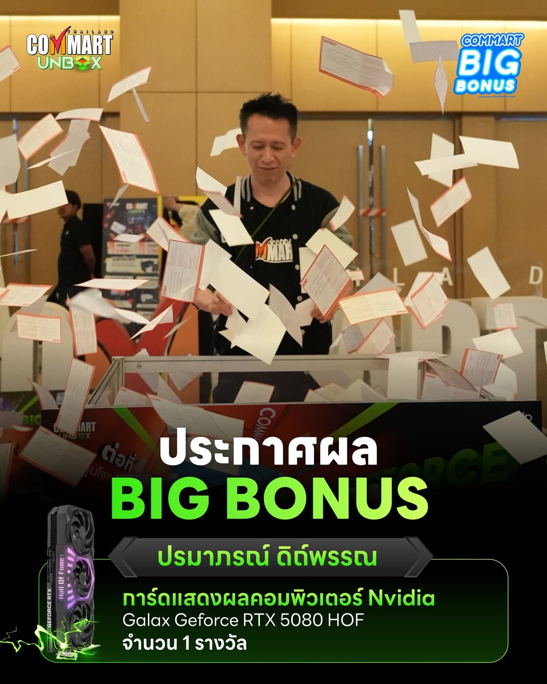 ผู้ได้รับรางวัลจะต้องมีชื่อตามบัตรประชาชนตรงกับในคูปอง และจะต้องแสดงพร้อมกับใบเสร็จรับเงินที่ประทับตรา COMMART UNBOX เพื่อเป็นหลักฐานในการรับรางวัล