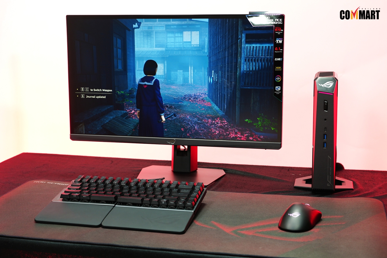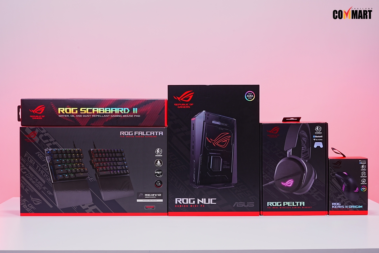 นอกจากตัว ROG NUC (2025) แล้ว รอบนี้ทาง ASUS ก็ส่งชุดเซ็ต ROG เกมมิ่งเกียร์ ทั้งเมาส์ ROG Keris II Origin , คียบอร์ด ROG Falcata , หูฟัง ROG Pelta และแผ่นรองเมาส์ ROG Scabbard II