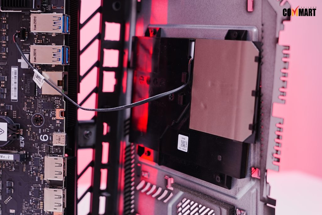 สำหรับการอัปเกรดนั้น ก็สามารถเพิ่มหรือเปลี่ยนส่วนแรม DDR5 แบบ SO-DIMM ได้ โดยเพิ่มความจุได้มากถึง 96GB (ใส่ 48GB x 2) ถัดมาคือช่องใส่ SSD M.2 โดยจะมีใส่ตัว 2TB M.2 2280 NVMe Gen 4 ไว้แล้วหนึ่งตัว (มีใส่ Heatsink ให้ด้วย) แต่ก็มีช่อง M.2 เหลือว่างอีกหนึ่ง สามารถหา SSD M.2 มาใส่เพิ่มได้เลย