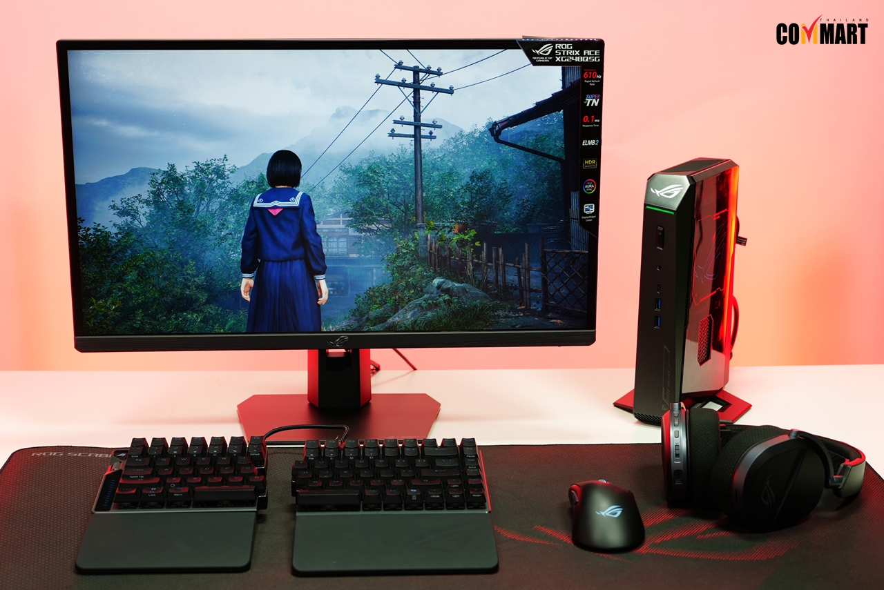 ประเดิมด้วย ROG Strix ACE XG248QSG จอเกมมิ่งขั้นสุดที่มาพร้อมพาแนลพิเศษอย่าง Super TN ให้อัตราการรีเฟรชสูงถึง 610Hz (ถ้าโอเวอร์คล็อก) เวลาตอบสนอง 0.1ms  กับขนาด 24.1 นิ้ว ความละเอียด FHD (1920 x 1080) ซึ่งถึงจะเป็นจอ TN แต่ก็ Super ทั้งลื่นทั้งคมทีเดียว พิสูจน์ด้วยเกม Silent Hill f ที่แม้ไม่ใช่เกมรีเฟรชสูง แต่ก็มีภาพกราฟฟิกที่สวยงาม ตัวจอก็ถ่ายทอดได้คมไม่แพ้จอ IPS ดี ๆ เลย
