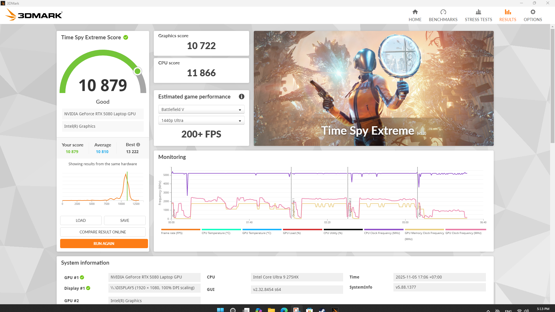 ทดสอบ Time Spy Extreme ช่วยประเมินความสามารถของฮาร์ดแวร์ว่ารันเกมหรือแอปฯ ได้ดีแค่ไหน ตัวเครื่องก็ทำคะแนนได้ถึง 10,879 คะแนนเลย