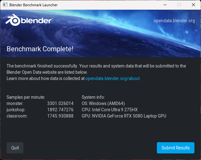 ลองทดสอบ Blender Benchmark ก็ได้ผลการทำคามตามภาพ