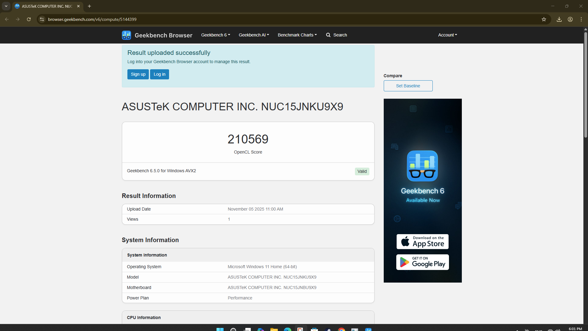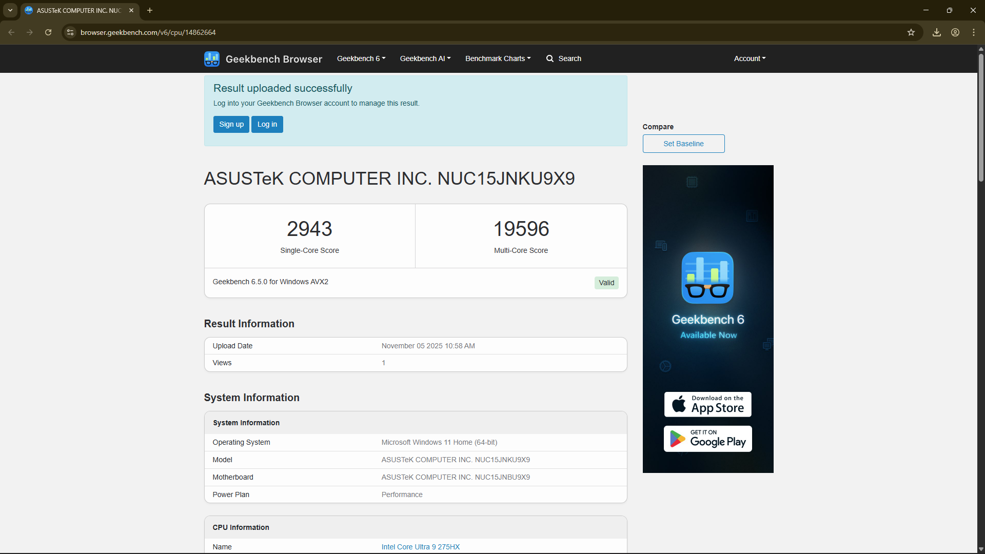 ต่อด้วย Geekbench 6 คะแนนฝั่ง RTX 5080 Laptop GPU ก็ได้ไป 210,569 คะแนน ส่วนซีพียู Ultra 9 275HX ก็ได้คะแนน Single Core ที่ 2943 คะแนน กับ Muti-Core ที่ 18,596 คะแนน คะแนนพอ ๆ กับ i9-14900K เลย