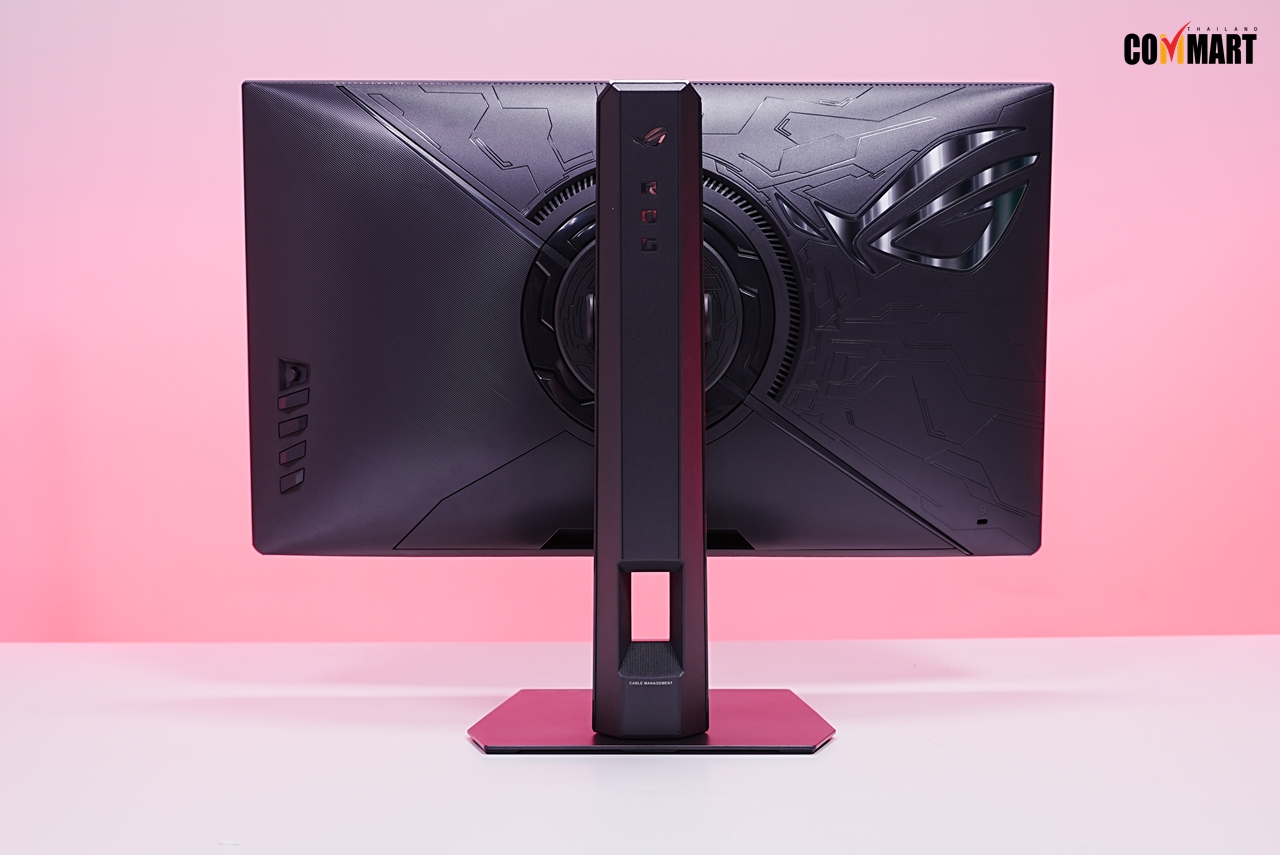 ในส่วนดีไซน์ของจอ ROG Strix XG248QSG ก็มีความเฉียบคมตามสไตล์จอ ROG Strix แต่ไม่มีไฟ RGB ด้านหลังนะ ตัวจอก็สามารถปรับมุมก้มเงยได้อิสระ