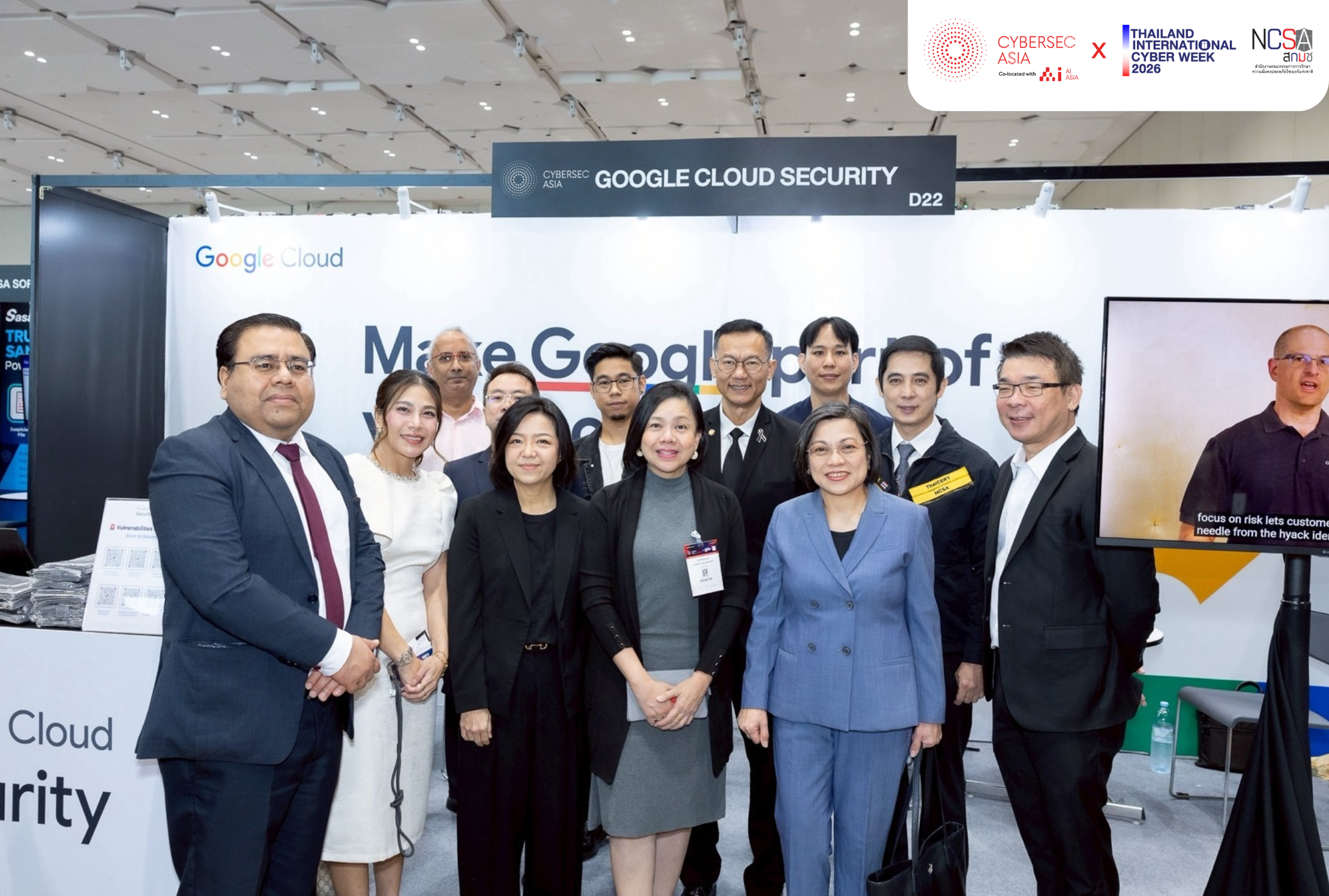 มุมมองระดับนานาชาติได้รับการถ่ายทอดโดย คุณ Atul Kumar ผู้อำนวยการ Data Security Council of India ซึ่งเน้นย้ำถึงความร่วมมือด้านไซเบอร์ข้ามพรมแดน และ พลอากาศโท อมร ชมเชย เลขาธิการสำนักงานคณะกรรมการรักษาความมั่นคงปลอดภัยไซเบอร์แห่งชาติ (NCSA) ที่ชี้ให้เห็นถึงความเร่งด่วนในการเสริมสร้างความพร้อมด้านความมั่นคงไซเบอร์ในระดับประเทศและภูมิภาค พิธีเปิดสิ้นสุดลงด้วยการเยี่ยมชมพื้นที่จัดแสดงนิทรรศการอย่างเป็นทางการ