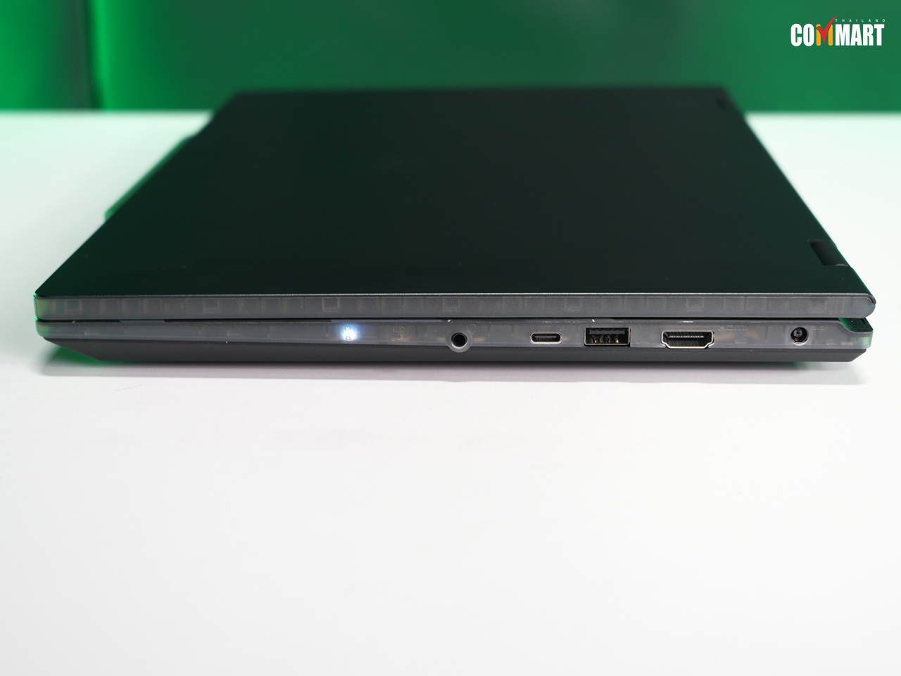 ทั้งนี้บริเวณด้านข้างคียบอร์ด ก็ยังมีจุดโปร่งใสที่เห็นขั้วต่อ USB Type-A กับ Type-C ด้วย
