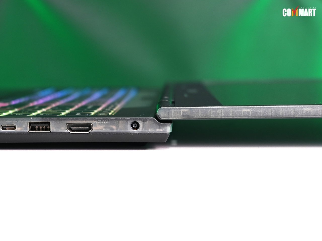 อนึ่งบริเวณพอร์ตเชื่อมต่อ จะเห็นส่วนที่เป็นโครงใสชัดเจนมาก ๆ แต่แอบเสียดายนิด ๆ ที่ไม่มีเอฟเฟค RGB ให้