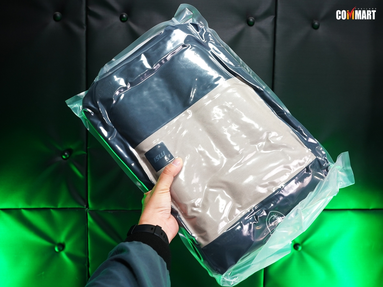 ตัวกล่อง MSI Cyborg 15 B2RW มาแบบสวยงามเกินคาด ส่วนภายในนอกจากโน้ตบุ๊กแล้ว ก็มีตัว Adaptor ขนาด 120W และกระเป๋าโน้ตบุ๊กเกมมิ่งจาก MSI สุดงาม