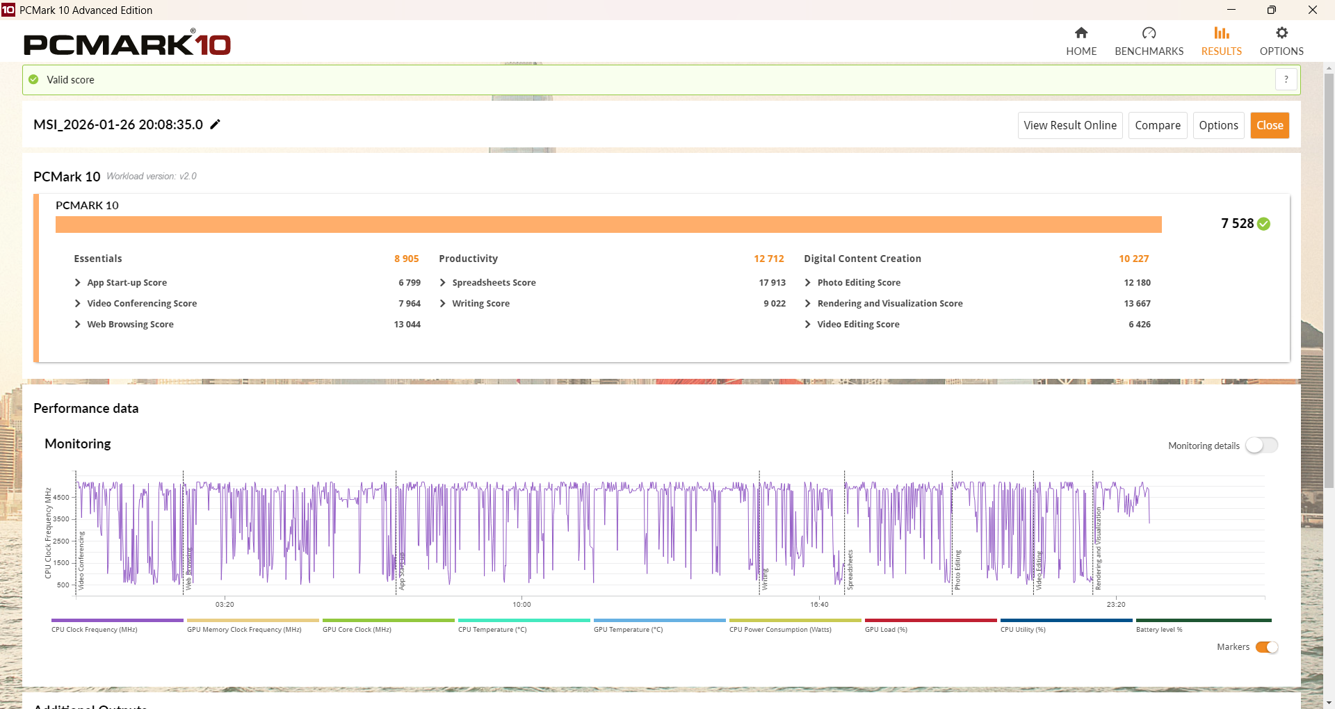 วัดประสิทธิภาพการใช้งานโดยรวมด้วย PC Mark 10 ตัวเครื่องก็ได้คะแนนที่ 7,528 คะแนน