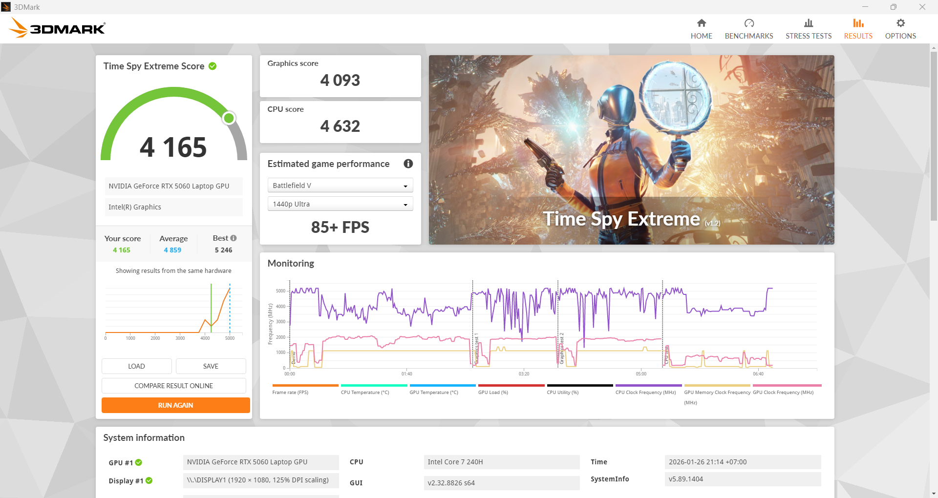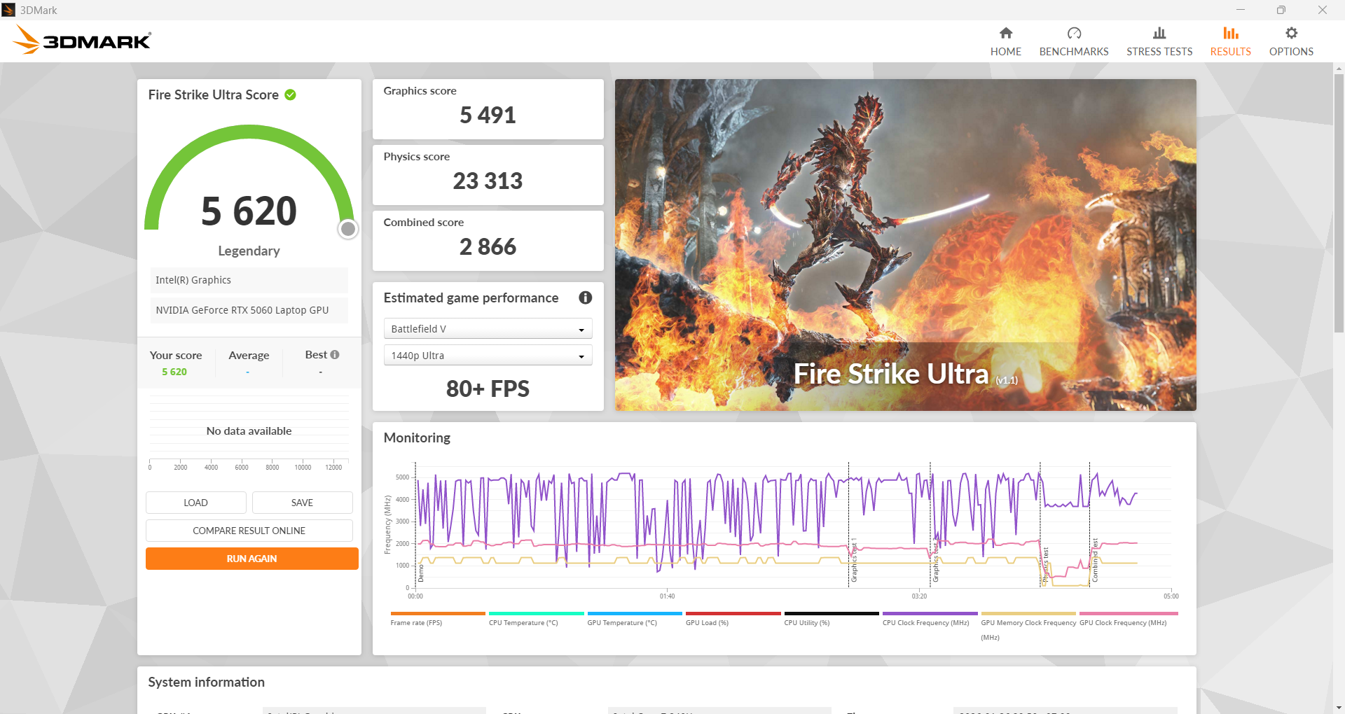 คะแนน 3DMark Fire Strike Utra จัดไปที่ 5,620 คะแนน แรงตามสเปก RTX 5060 Laptop 8GB GDDR7 และซีพียู Intel Core 7 240H