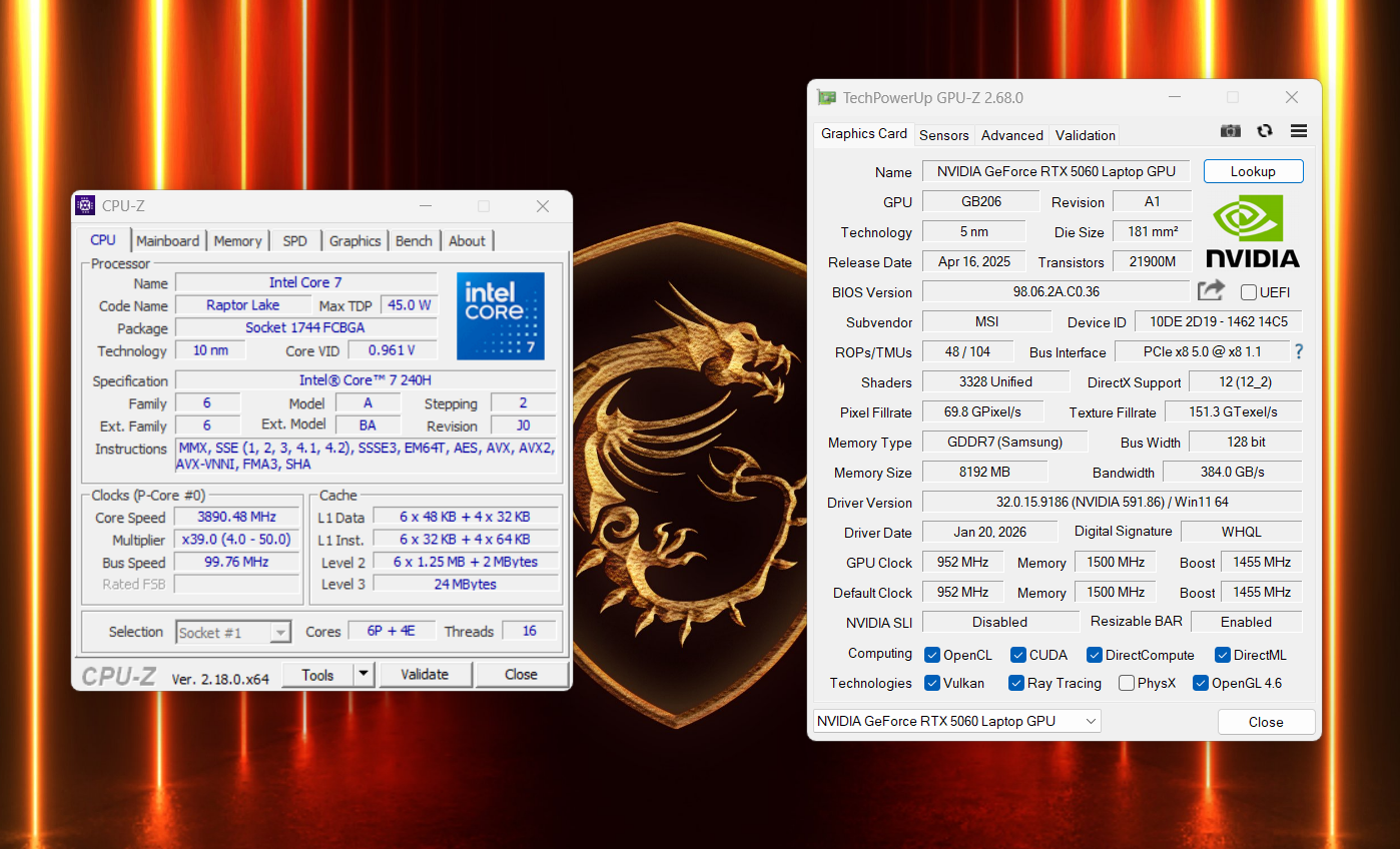 - GPU : NVIDIA GeForce RTX 5060 Laptop 8GB GDDR7