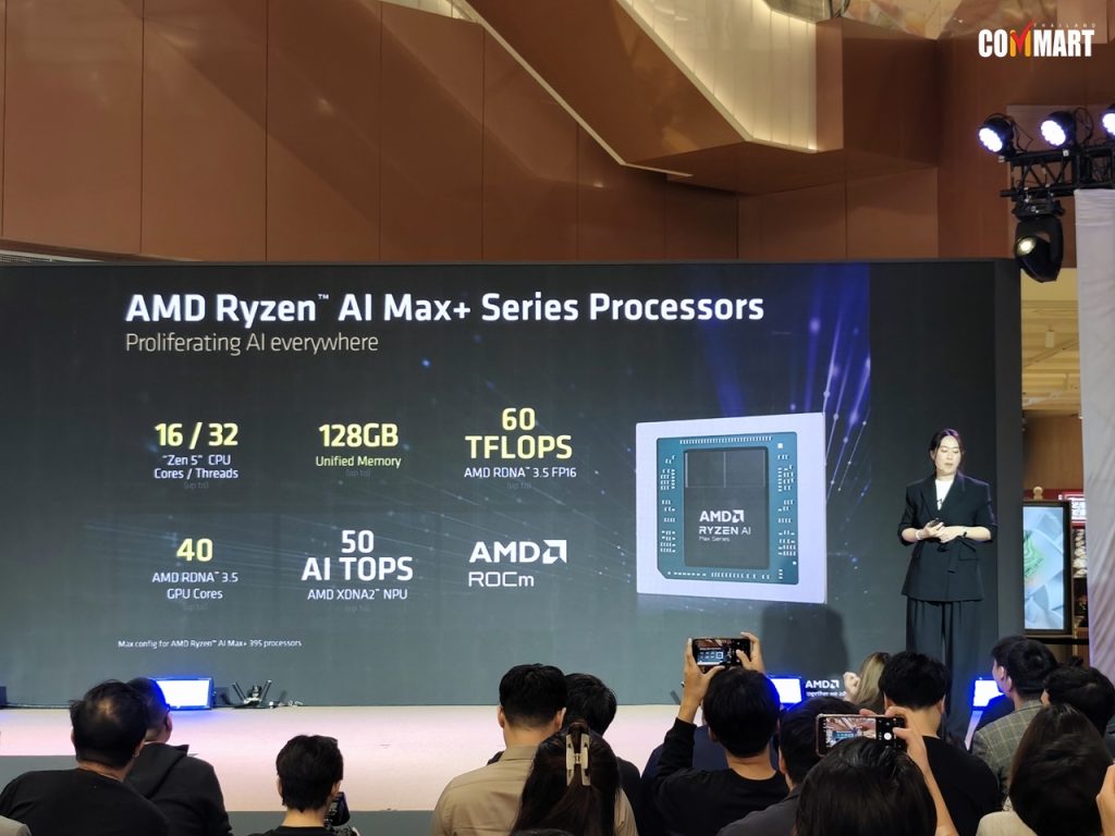 สำหรับชิป Ryzen AI 400 Series ทาง AMD Thailand เผยปประสิทธิภาพเด่นเลยคือ AI ที่รอบนี้มีชิป NPU ช่วยประมวลผล AI ได้แรงกว่า 50 TOPS ทำให้สามารถรัน AI ได้ในตัว โดยไม่ต้องพึ่งอินเทอร์เน็ต ไม่ต้องพึ่ง Cloud ทำให้ใช้งาน Generative AI ได้รวดเร็ว ปลอดภัย และส่วนตัว