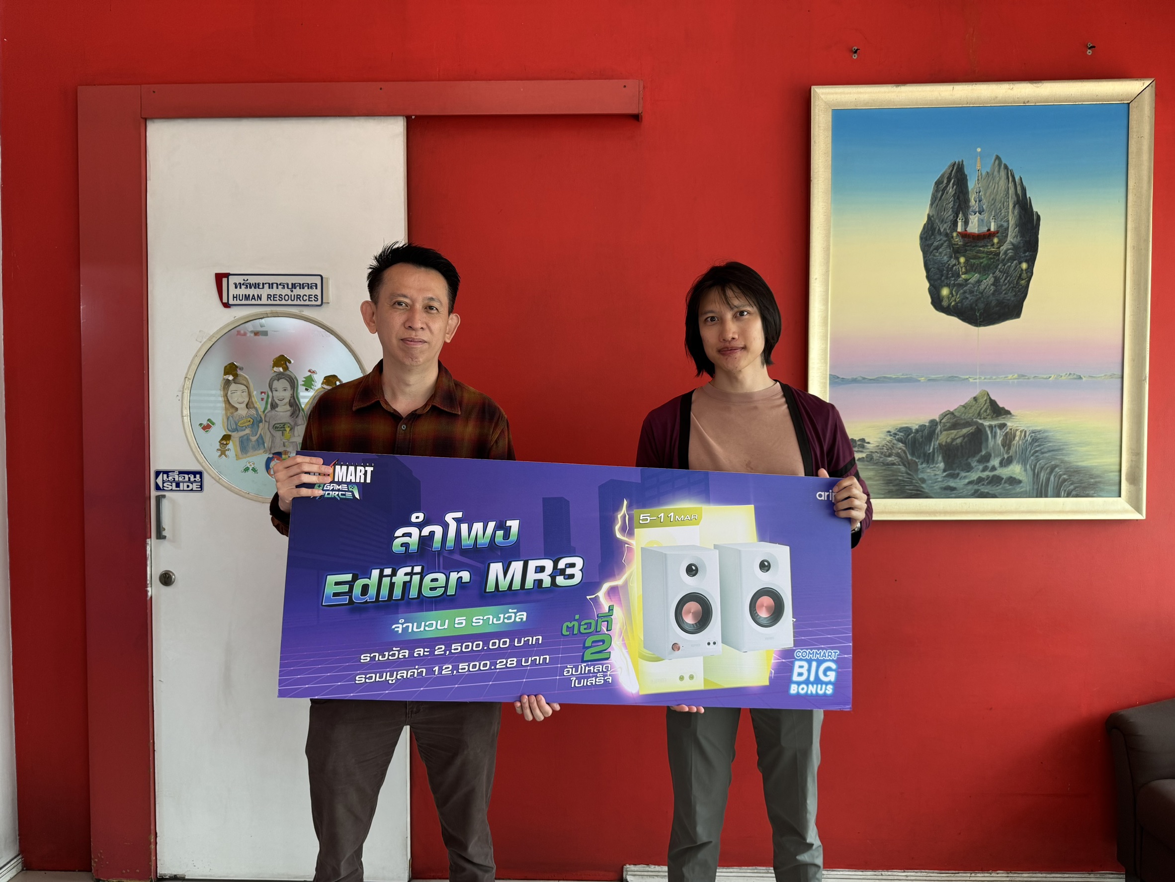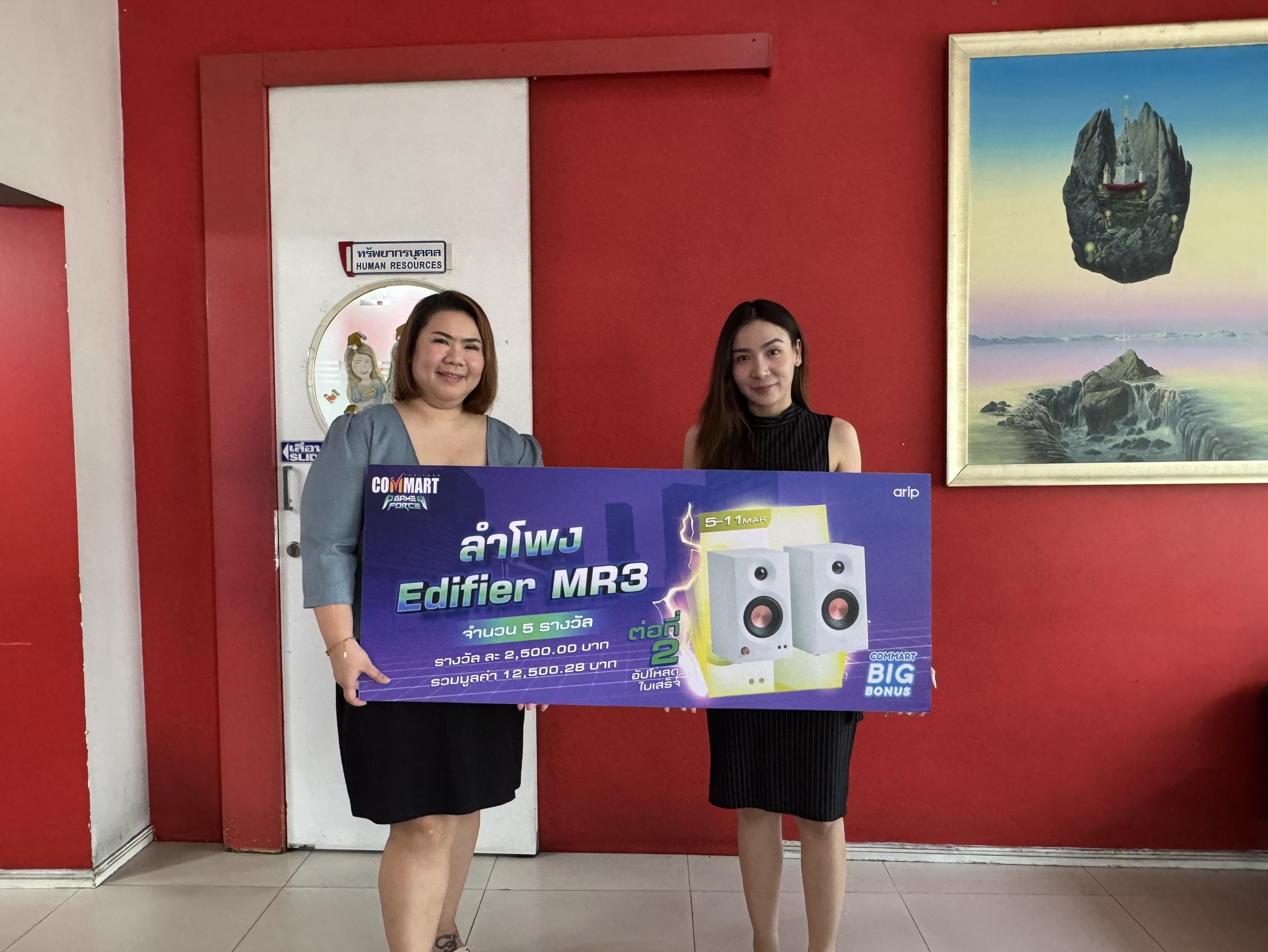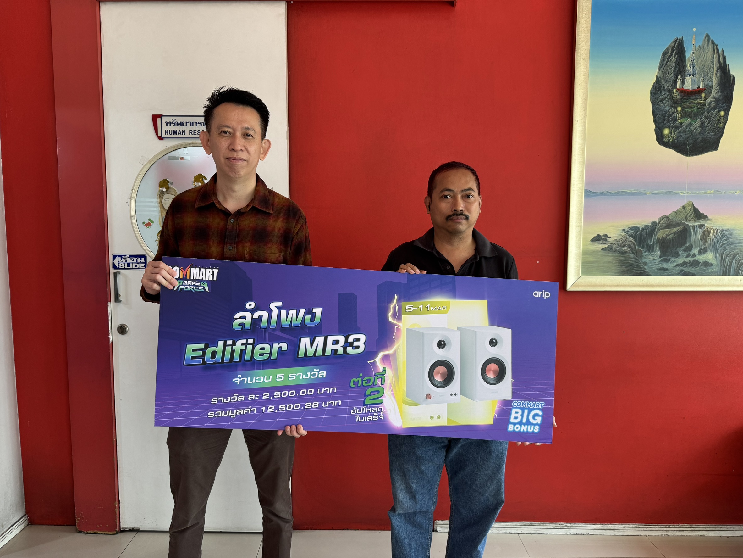 • เพียงอัปโหลดใบเสร็จซื้อสินค้างาน COMMART GAMEFORCE ระหว่างวันที่ 5 – 11 มีนาคม 2569 ลำโพง Edifier MR3 จำนวน 5 รางวัล รางวัล ละ 2,500.00 บาท รวมมูลค่า 12,500.28 บาท