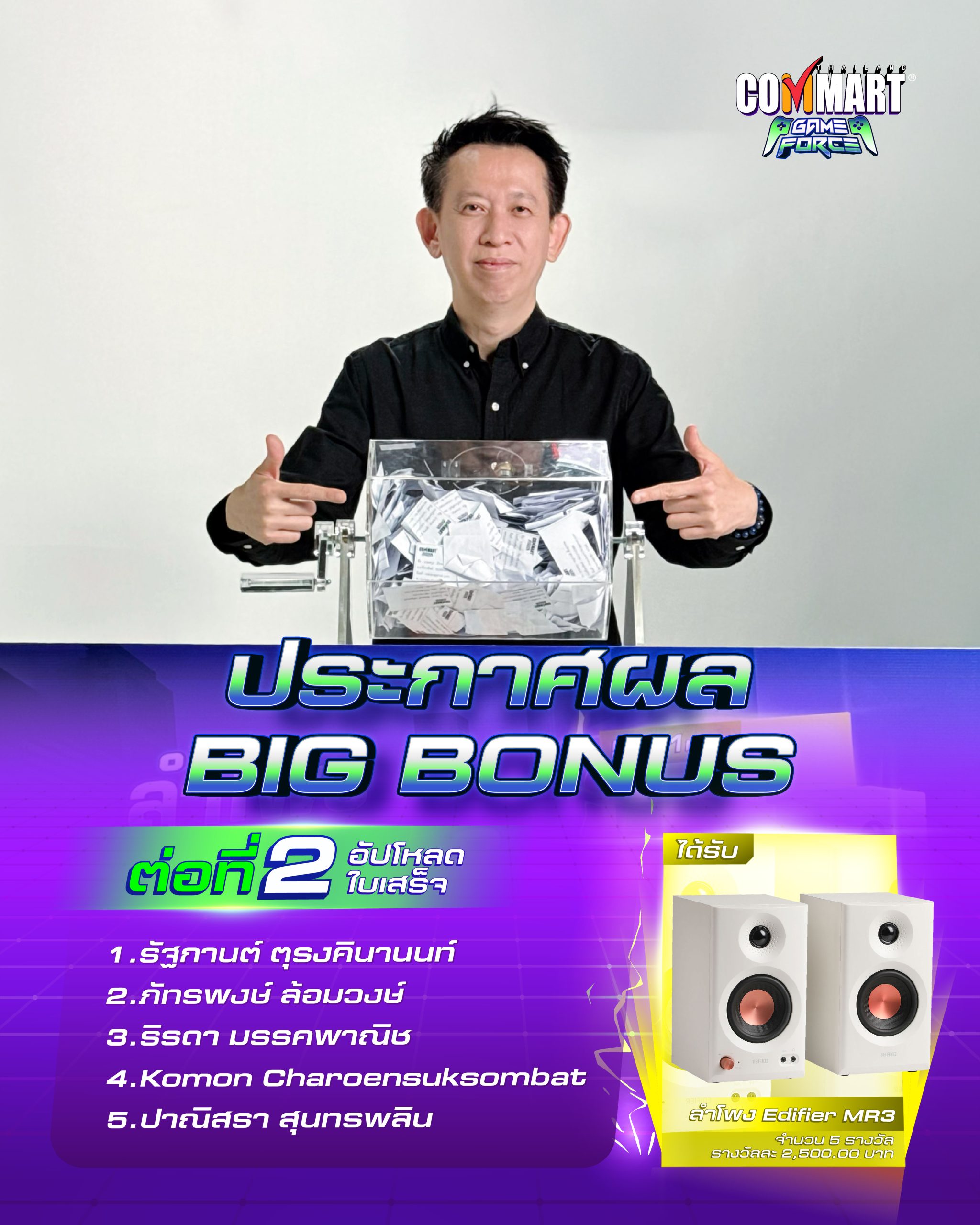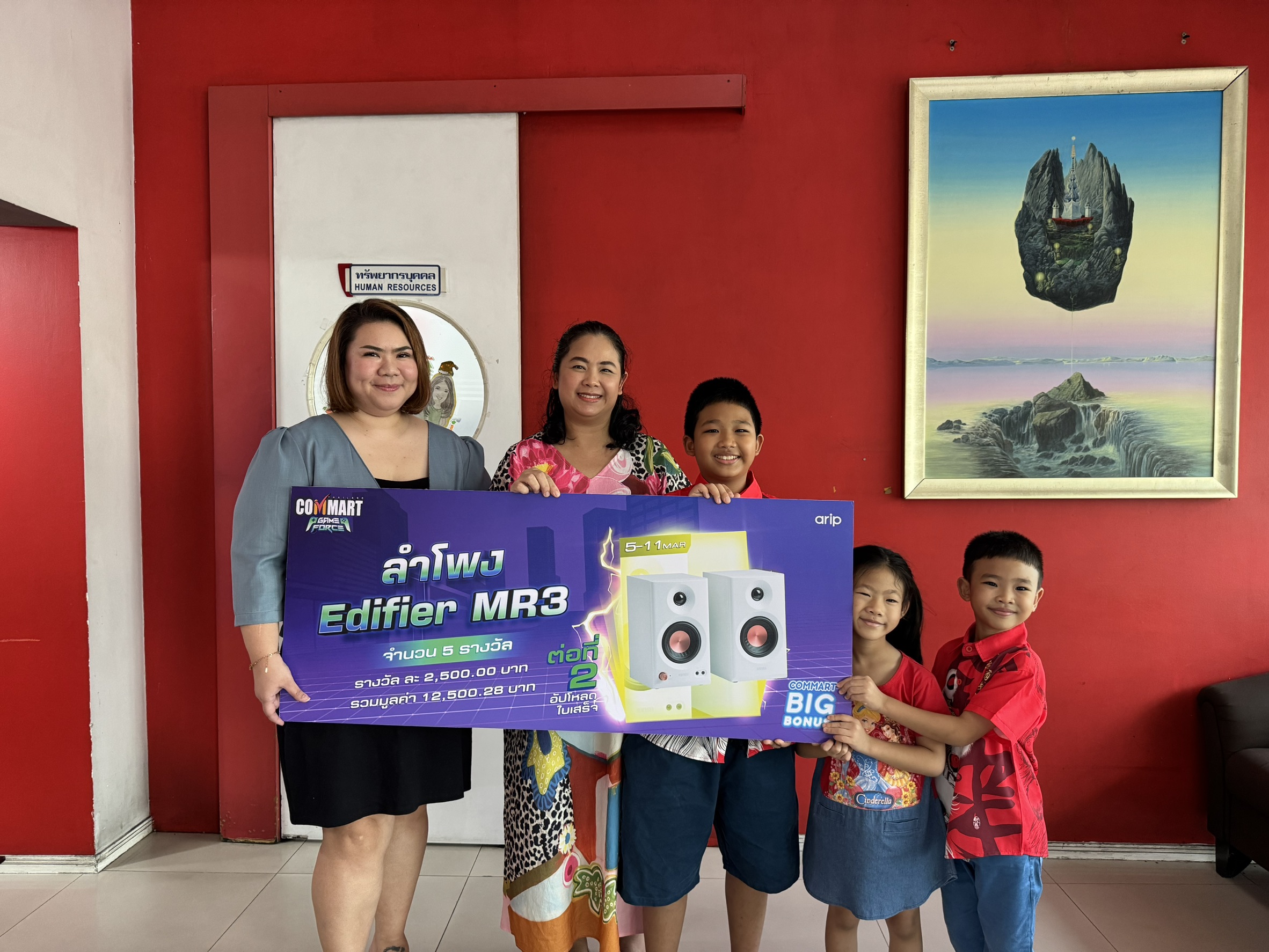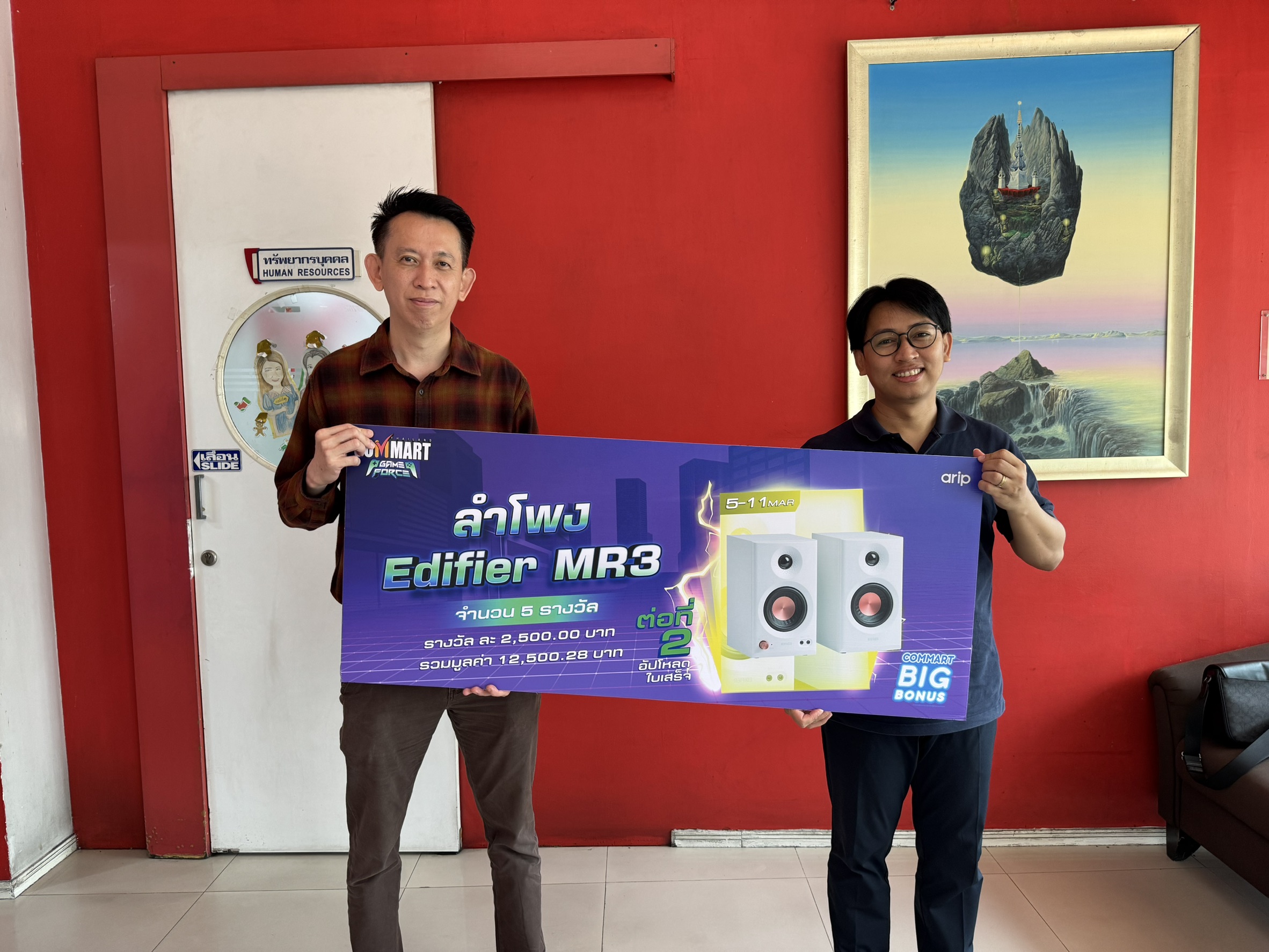 • เพียงอัปโหลดใบเสร็จซื้อสินค้างาน COMMART GAMEFORCE ระหว่างวันที่ 5 – 11 มีนาคม 2569 ลำโพง Edifier MR3 จำนวน 5 รางวัล รางวัล ละ 2,500.00 บาท รวมมูลค่า 12,500.28 บาท