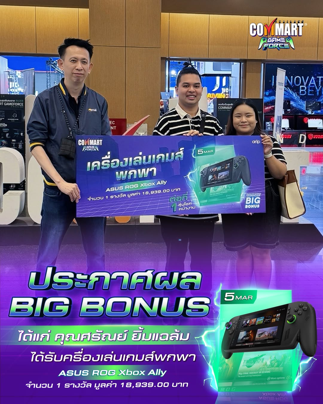 5 มีนาคม เครื่องเล่นเกมส์พกพา ASUS ROG Xbox Ally จำนวน 1 รางวัล มูลค่า 18,939.00 บาท
