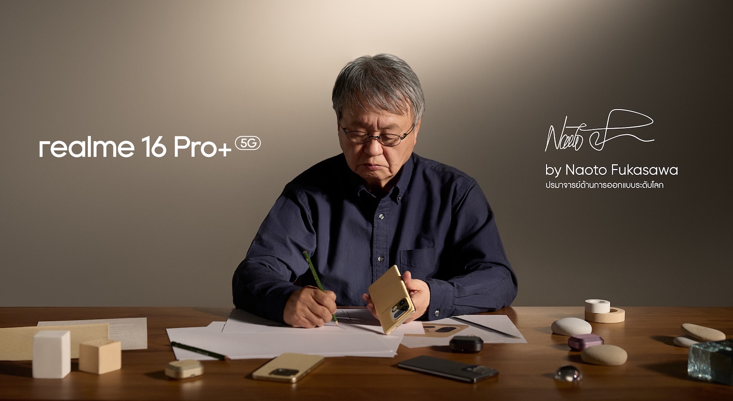 realme (เรียลมี) แบรนด์สมาร์ตโฟนที่เติบโตเร็วที่สุดในโลก ประกาศการคอลแลบสุดปังอีกครั้งหลังจากห่างหายไปนานถึง 3 ปี กับปรมาจารย์ด้านการออกแบบระดับโลก “นาโอโตะ ฟุกาซาวะ (Naoto Fukasawa)” พร้อมนำเสนอ “Urban Wild Design” สุดล้ำบนสมาร์ตโฟนเรือธงใหม่อย่าง “realme 16 Pro+ 5G” ซึ่งนับเป็นครั้งแรกในการร่วมออกแบบกับ นาโอโตะ ฟุกาซาวะ ในตระกูล Number Series นำเสนอดีไซน์รูปแบบใหม่ที่ผสานแนวคิดธรรมชาติกับงานฝีมือร่วมสมัยระดับเฟิร์สคลาส เพื่อสร้างสรรค์ผลงานออกแบบระดับ Master Design พร้อมโทนสีใหม่ล่าสุด และยังเลือกใช้วัสดุไบโอเบสออร์แกนิกซิลิโคนเป็นครั้งแรกของวงการ ผสมกับเทคนิคการรังสรรค์ความงามแบบอัปเกรดจนเกิดเป็นผลงานชิ้นเอกที่โลกสมาร์ตโฟนต้องตะลึง!