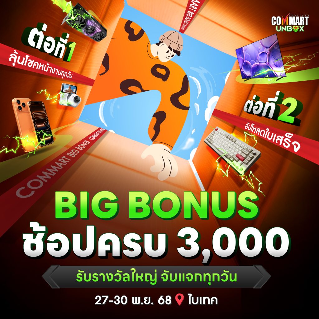 ช้อปส่งท้ายปี คอมมาร์ต ยกทัพแกดเจ็ตตัวดัง เปิดกล่องเทคโนโลยีใหม่ มาให้ได้อัปเกรดกันก่อนใคร 27-30 พ.ย. 68 เข้าฟรี ที่ไบเทค บางนา บมจ. เออาร์ไอพีและพันธมิตร พร้อมเปิดกล่องเทคโนโลยีใหม่จับมือแถลงข่าวการจัดงาน “COMMART UNBOX” มหกรรมสินค้าไอทีส่งท้ายปี ยกทัพ Gadget ตัวดัง สินค้าเทคโนโลยีใหม่ พร้อมเลือกซื้อสินค้าไอทีเป็นของขวัญช่วงเทศกาลปีใหม่สุดล้ำมาให้ได้อัปเกรดกันก่อนใคร จากผู้ผลิตและผู้จัดจำหน่ายชั้นนำตอบรับเข้าร่วมงาน   ACE, Banana, E-Quip, Epson, iStudio by spvi, IT City, JIB, Maru, Zarukon, JIB Mobile, MSI, Speed Computer, Speed Gaming, Studio7, AJAZZ, AMD, Intel, AppleSheep, Ascenti, ASUS, Bewell, Cougar, EDIFIER, ERGOTREND, Lifestyle Technologies, SecretLAB และ เครดิตบูโร พร้อมกันนี้ยังจัดให้มีงานมอบรางวัล Commart Awards 2025 สุดยอดสินค้าด้านเทคโนโลยีที่ดีที่สุดแห่งปี 2568 ที่สามารถจับต้องและเป็นเจ้าของได้ในงาน COMMART UNBOX พบกัน 27-30 พ.ย. 2568 ณ ไบเทค บางนา ห้ามพลาด – โน้ตบุ๊กเจนใหม่ รองรับ AI อัปเกรดเป็น Windows 11 – DIY จัดสเปกคอมเล่นเกมได้ในราคาสุดคุ้ม ...