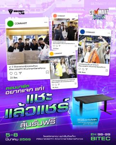 Recommend รูปไหนปังรับไปเลย! คอมมาร์ตอยากแจก แค่แชะ แล้วแชร์ รูปไหนปังรับไปเลย! คอมมาร์ตอยากแจก อยากแจก อยากแจก มางานคอมมาร์ตแค่แชะแล้วแชร์ คุณอาจเป็นผู้โชคดี ได้รับ “โต๊ะปรับระดับไฟฟ้า Secretlab MAGNUS Pro” 1 รางวัล กลับบ้านไปฟรี ๆ สปอนเซอร์ใจดี จัดให้ เพียงโพสต์รูปตัวเองมาเดินในงาน ตั้งค่าเป็นสาธารณะ อย่าลืมใส่แท็ก#SecretlabTH #CommartGameForce ประกาศผลผู้โชคดีกิจกรรมจากแชะแล้วแชร์ ยินดีกับคุณ “รู้ ยัง” ด้วยนะครับ ได้รับ “โต๊ะปรับระดับไฟฟ้า Secretlab MAGNUS Pro” 1 รางวัล ยืนยันสิทธิ์รับรางวัล ภายในวันที่ 31 มีนาคม 2569 ที่ LINE Commart –> https://lin.ee/cWoV8p1 📌 Commart GameForce 5-8 ... เริ่ม